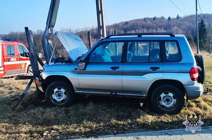 Samochód zjechał z jezdni, przebił ogrodzenie i zatrzymał się na słupie energetycznym - w aucie był 5-latek, nikt nie odniósł obrażeń. Policja ukarała kierującą mandatem i punktami.