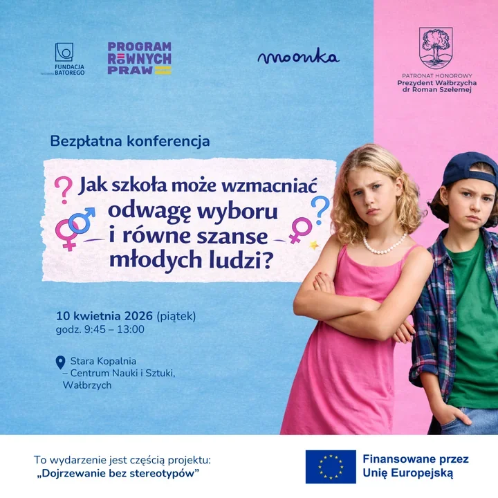 O tym właśnie będzie mowa podczas konferencji „Dojrzewanie bez stereotypów. Jak szkoła może wzmacniać odwagę wyboru i równe szanse młodych ludzi?”, organizowanej w Wałbrzychu przez Fundację moonka pod patronatem honorowym Prezydenta Miasta. Spotkanie ma przyjrzeć się temu, co naprawdę dzieje się w klasach, gdy młodzi ludzie zaczynają testować granice, a szkolne relacje stają się bardziej napięte.