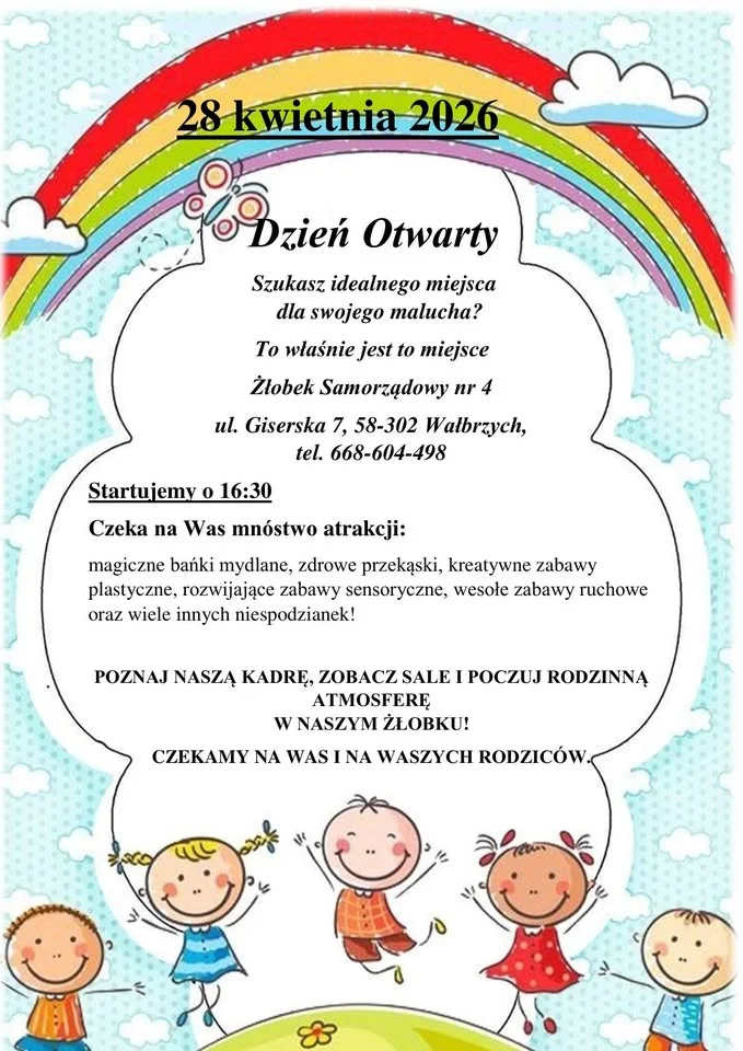Dzień Otwarty w Wałbrzychu zapowiada się jako fajna okazja, żeby zajrzeć na Giserską 7 i zobaczyć to miejsce z bliska bez pośpiechu. 28 kwietnia o 16:30 będzie można wpaść, rozejrzeć się i po prostu sprawdzić, co przygotowano na ten dzień — warto mieć ten termin na oku